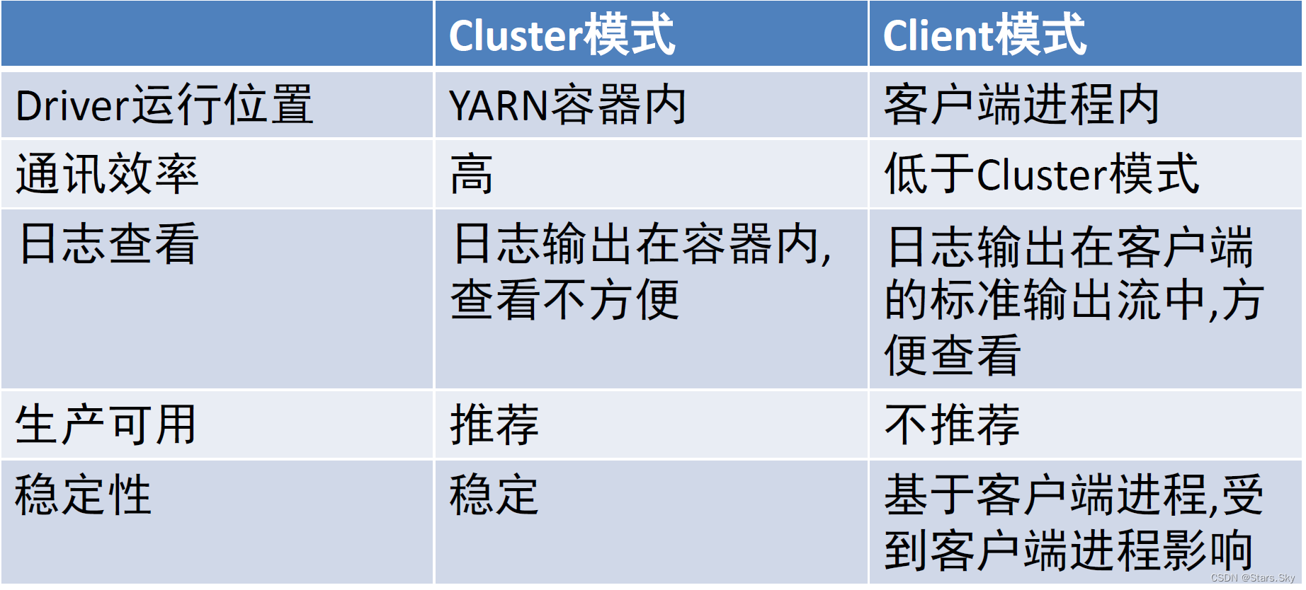 client 模式和 cluster 模式最最本质的区别是:driver 程序运行在哪里。
