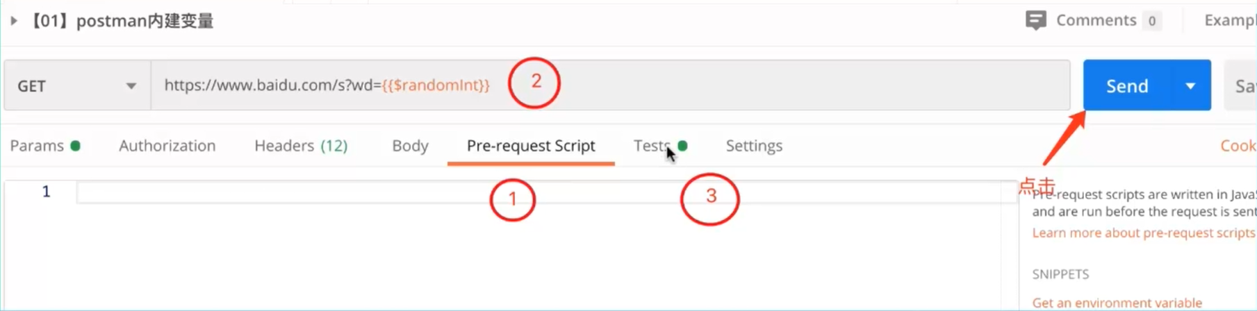 pre-request script为执行接口请求之前要做的操作,而tests是执行完请求要 做的操作。内建变量一般放在request里,我们也可以用代码在pre-request script中实现,用代码实现的好处是可以复用。