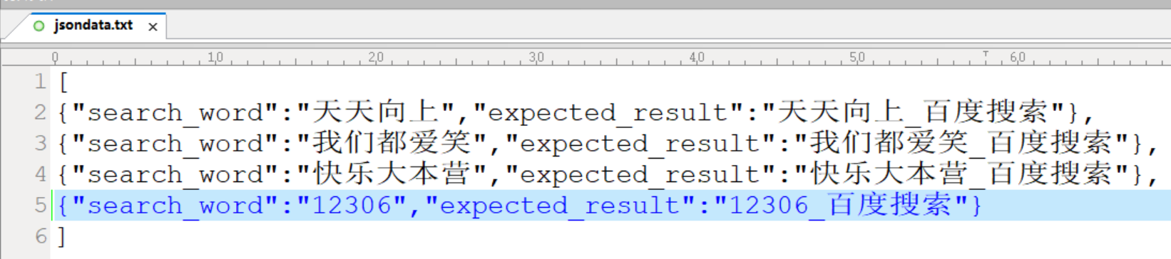 json文件你需要确保你的文件有键/值对数组。数组中的每个元素是键值对对 象,代表一次迭代。key作为request中要使用的变量名,value作为key的取值。