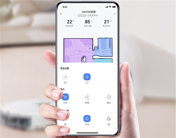 从app的设计来看,用户可通过晓舞app切换自动清洁、选区清洁、划区清洁、设置禁扫区等功能,通过手机即可实现个性化定制专属的清洁策略,同时支持远程、天猫精灵语音控制,操作简单。