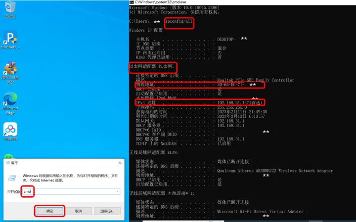 那么,如何找到我们电脑网卡的mac地址呢?很简单。同时按下键盘左下角的windows键+字母r,然后在跳出的运行框中输入“cmd”后回车,然后在跳出的命令行中敲入ipconfig/all,然后回车即可。