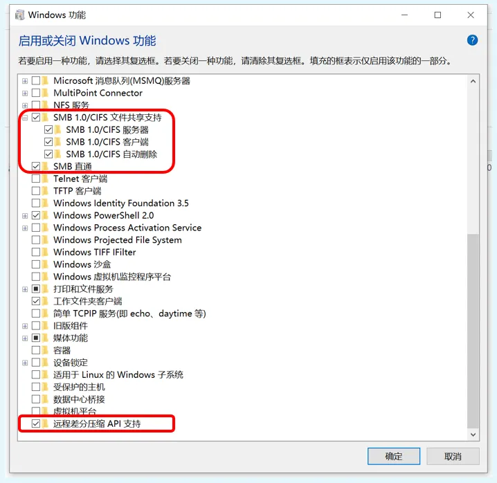 实际上,windows10默认的局域网磁盘共享就是使用smb协议的,但是版本为smb2.0。而手机上的一些文件管理器app,仍然在使用smb1.0版本协议。因此我们最好在windows10中,同时开启smb1.0兼容,这样后期在手机上访问nas共享硬盘的兼容性会好很多。而开启iis管理控制台,则是为了稍后部署webdav服务。