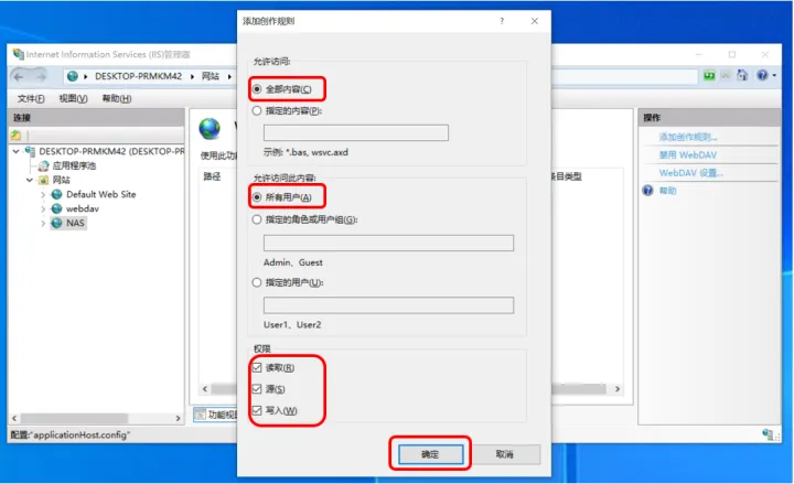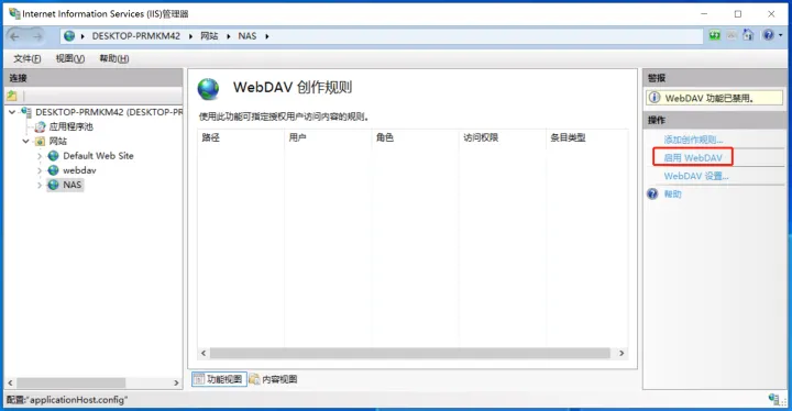 点击确定后,就可以看到webdav共享文件夹中的文件了!如果能看到web.config这个文件,就说明所有设置都成功了!