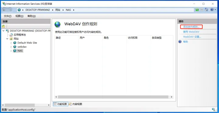 5.4.1开启iis管理控制台和webdav服务