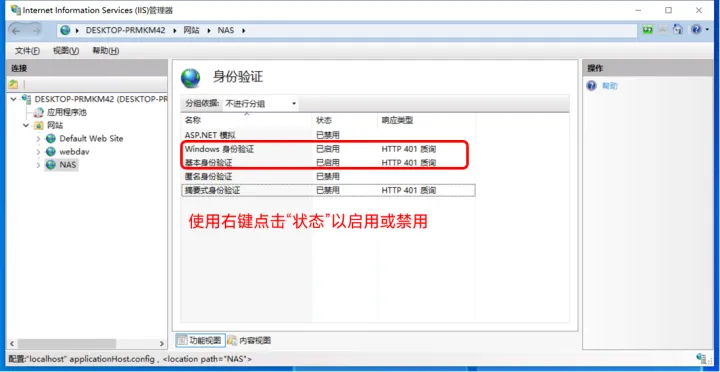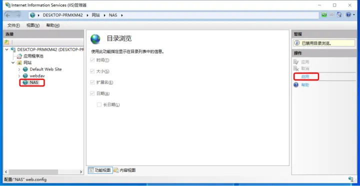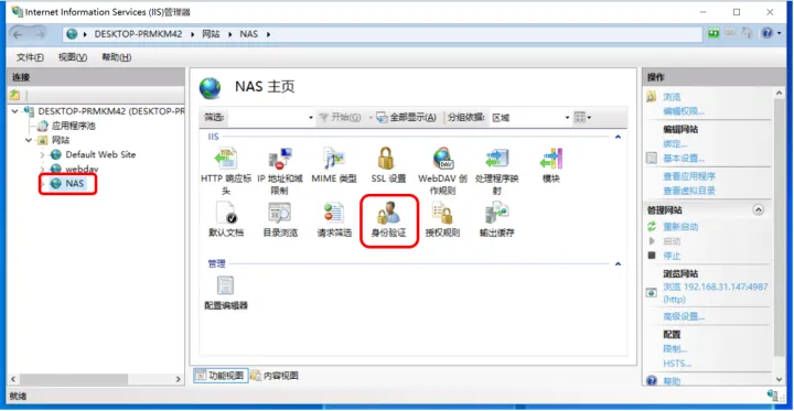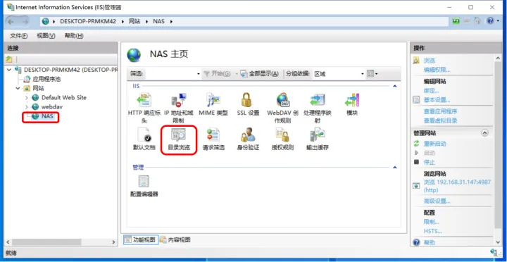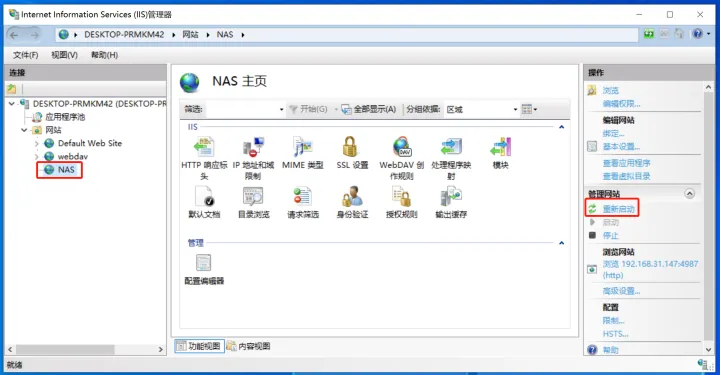 这时候,我们的webdav服务就设置完成了!为了验证是否能够正常访问,可以点击右侧浏览网站下面的网址(ip地址):