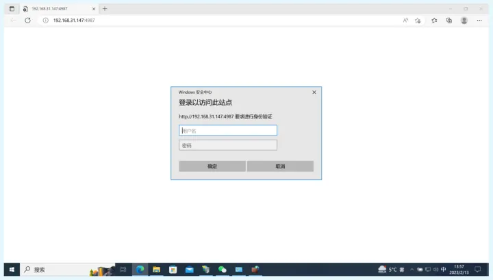 点击后,浏览器会自动弹出并转到webdav的页面,并跳出登录框。输入这台电脑的登录账户和密码,也就是在前面5.2章节中设置的windows登录用户名和密码。