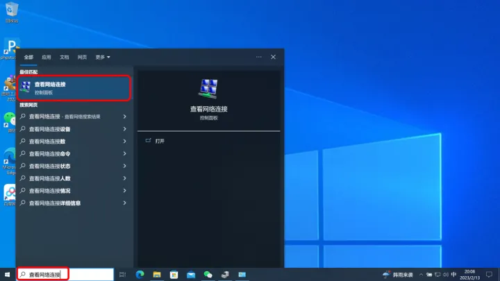 在桌面左下角搜索框中输入“查看网络连接”,然后打开。