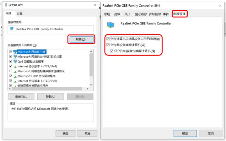 这里会出现一个大坑。有些小伙伴的电脑明明自带网口,却在网卡属性面板中根本找不到“电源管理”选项卡。这很可能是因为windows10系统自动安装的网卡驱动版本不对,只能实现上网等基本功能,但一些高级设置是缺失的。解决方案是去到电脑或主板制造商官网,下载并安装官方正式版驱动程序。