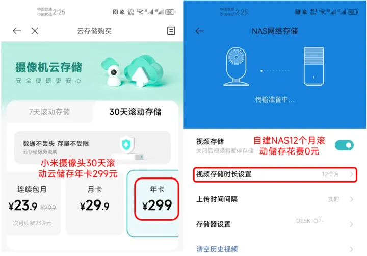 一些需要储存空间的智能家居设备,比如摄像头,在没有nas的情况下,只能插储存卡或者购买云存储服务,不是容易损坏,就是需要花钱,而且还有隐私风险。有nas的情况下,我们可以将智能家居摄像头直接挂在共享盘上,几乎可以实现无限的储存空间,并且不用花钱,也不会损坏。