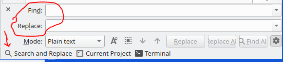 "search and replace"按钮,可以用来切换 搜索和替换的模式