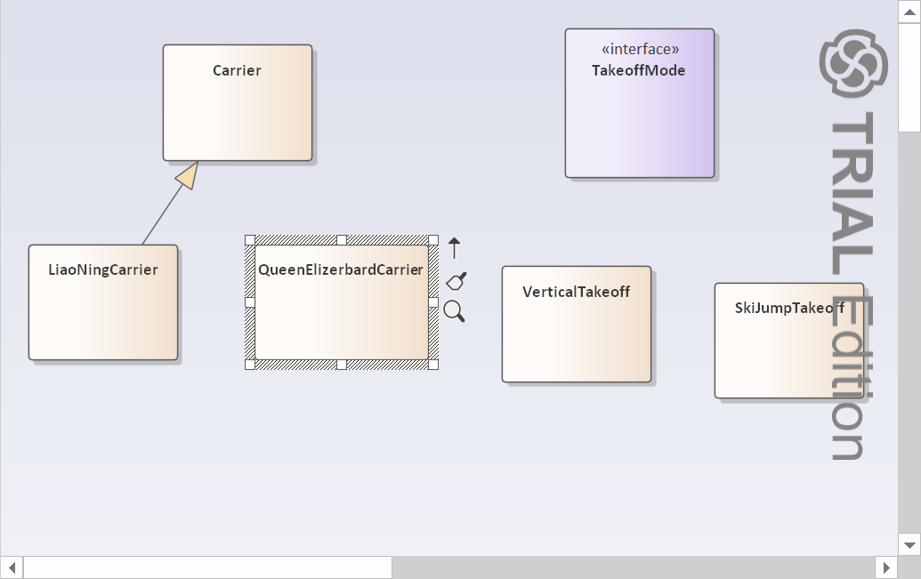 选择好模型之后,就可以手动绘制uml图了,在上方有工具栏,可以进行拖拽构建。