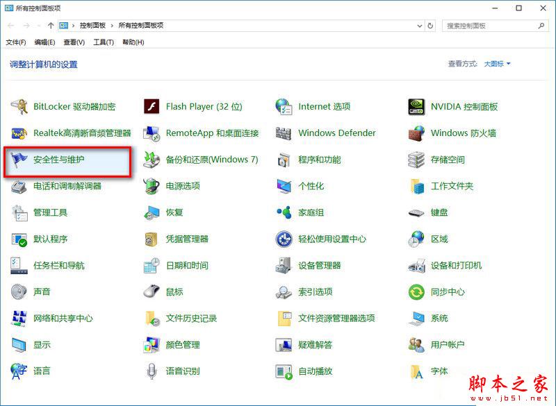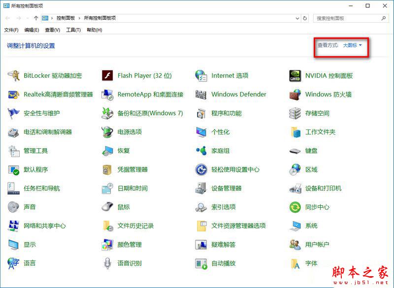 打开控制面板后左上角有个查看方式,选择大图标,如图所示: