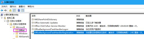 2. 选择【系统工具】 >【 任务计划程序】>【任务计划程序库】> 【microsoft】>【office】: