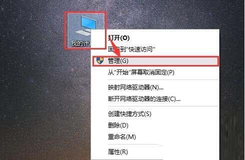 1、在电脑桌面选中”此电脑“图标,鼠标右击在弹出来的列表中选择”管理(g)“,如下图所示。