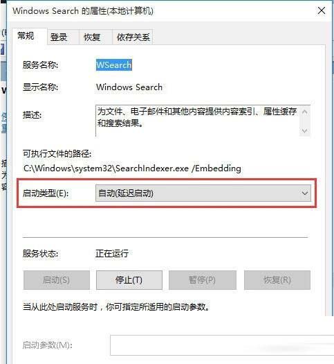 3、鼠标双击”windows search“,进入到”windows search“窗口,可以看到”启动类型(e)“是自动(延迟启动),也就是在电脑开机后全有自动服务启动后再启动它,你可以根据需要设置为”自动“。
