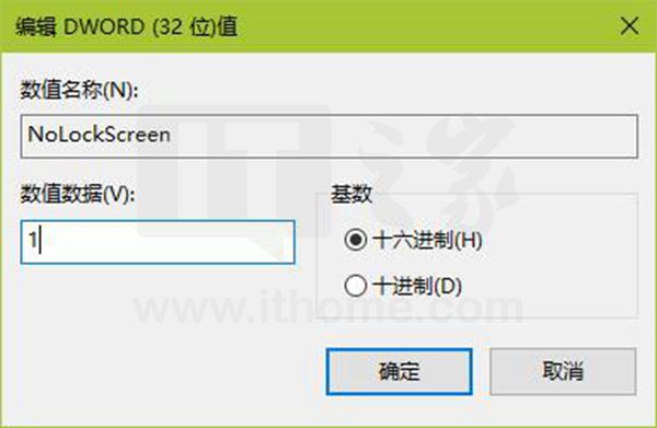 双击你刚刚新建的名为nolockscreen的dword(32位)值,将数值数据下的输入框中的数字设置为1,点击确定;