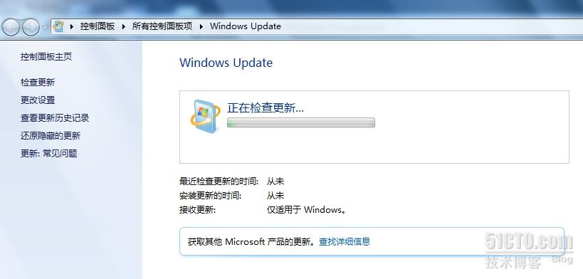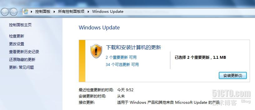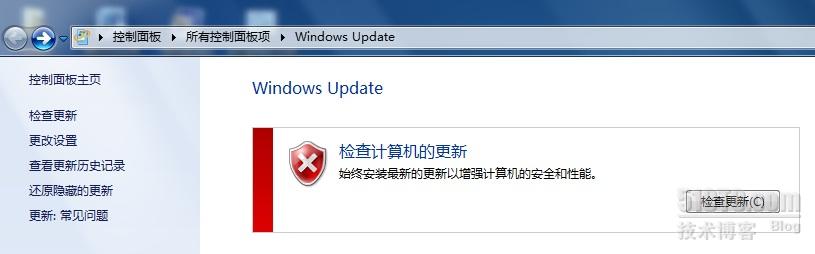 启动“windows update”服务,打开“windows update”,此时能看到红盾牌下边的文字了