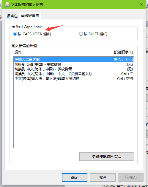 4、勾选“按caps lock键”,然后点击确定退出就可以了。