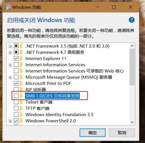 图:关闭smb 1.0 功能