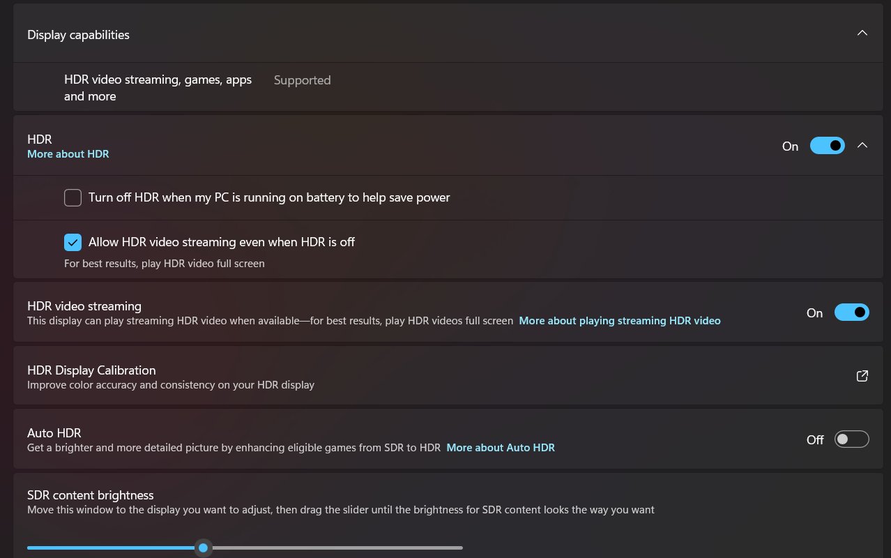 除此之外,hdr 设置中还有一些小的字符串变化,例如“hdr 视频流”改为“hdr 视频流、游戏、应用程序和更多”。