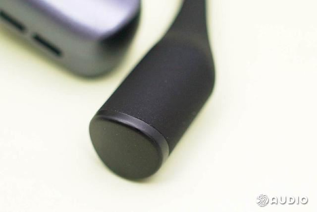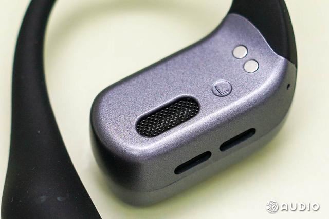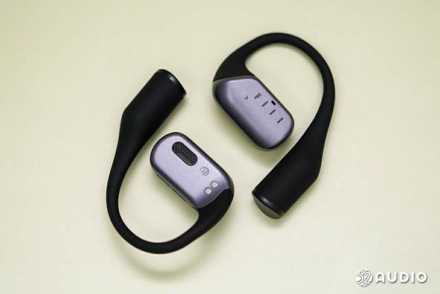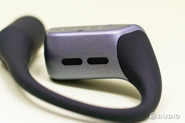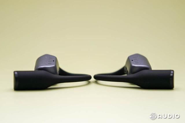 耳挂和耳挂末端都采用黑色的液态亲肤硅胶材质包裹,拥有很好的一体性,曲线弧度流畅。耳挂部分使用了0.68mm超细钛合金丝柔性材质,面对不同的耳形,有更好的自适应能力。