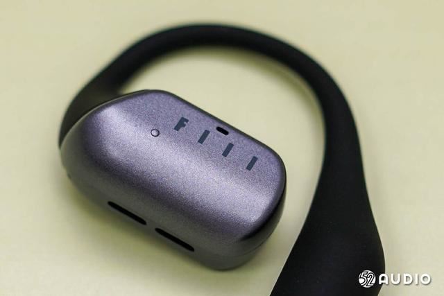 耳机音腔部分采用和充电盒类似的灰色磨砂材质,外侧有fiil的logo以及耳机状态指示灯。外侧还有一个凸起的小点,用于指示触控操作区域,便于盲操作。