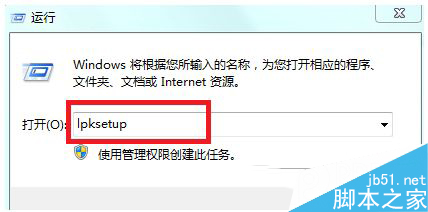 2、按住win+r → 对话框中输入“lpksetup” → 点击回车键。