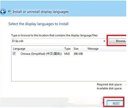 4、出现如下界面 → 点击browse → 找到下载到的语言包 → 点击next。