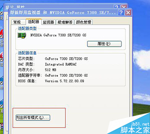 4、在弹出的选项卡中选择【适配器】,然后点击左下角【列出所有模式】。