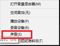 看到屏幕右下角的小喇叭了吗?在它上面用鼠标右键选择“声音”,