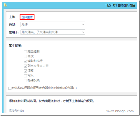 8、这时候目录权限为空,我们再点击“添加”