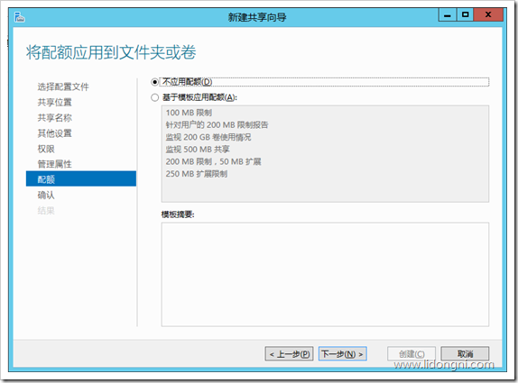 在windows server 2003中是配额限制只能针对磁盘,而windows server 2012 r2的配额限制,可以针对文件夹与磁盘两种。