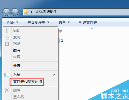 1、随便打开一个文件夹,点击左上角的“组织》文件夹和搜索选项”;