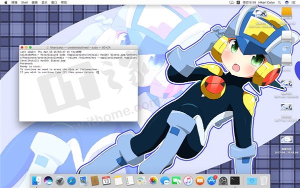 注意此命令区分大小写,而且install macos sierra之间的空格前面有一个反斜杠,不要漏掉了。