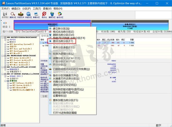 把u盘或移动硬盘插回windows pc,使用任何常见的磁盘分区工具,将windows安装文件所在的分区设置回活动分区,并保存修改。