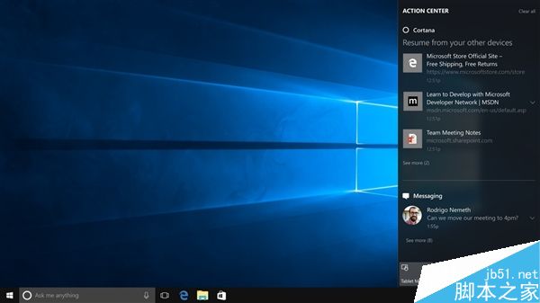 更换电脑后,在操作中心小娜可以显示相关链接,帮助返回到最近经常使用的edge浏览器页面和sharepoint文件,或者其他基于云的应用。