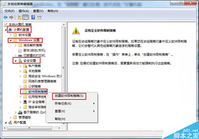 1、点击“开始→运行”,输入gpedit.msc。在“组策略”窗口左侧,依次点击“计算机配置→windows设置→安全设置→软件限制策略”项,然后点击“操作→创建新策略”菜单项。