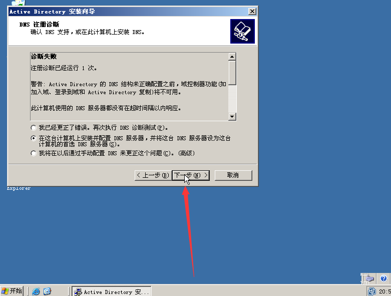 11、这里选择如下图在这台计算机上安装并配置dns服务器,在单击下一步。