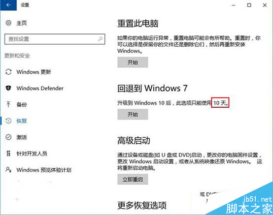但有一点需要注意的是,这项功能是有一个使用期限的:在升级到win10后的一个月10天(一周年更新版新规定)内可以使用,过期不候。超过这段期限以后,就只能按照以前传统的“简单粗暴”方式进行格式化重装了。还有一点需要注意的是,升级win10后一定要保存原来win7/win8.1的系统文件夹windows.old。因为这是这项降级功能的根本所在,如果你在10天内想回退到低版本的windows,就一定要保证原有操作系统文件实际存在。这个文件夹如果被删除了,那么也就只能通过格式化重装的方式降回原来的系统了。