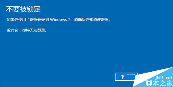 4、对于已经设定登录密码的用户,回退后密码将被恢复,因此你需要知道该密码才能正常登录。确认该消息不会影响到你的使用后,点击“下一步”继续。