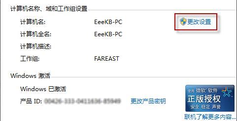 若相关信息需要更改,请在“计算机名称、域和工作组设置”一栏,单击“更改设置”。