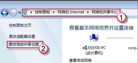 这一步操作完成后, 请重启计算机使更改生效。步骤二:更改 windows 7 的相关设置:打开“控制面板网络和 internet网络和共享中心高级共享设置”。