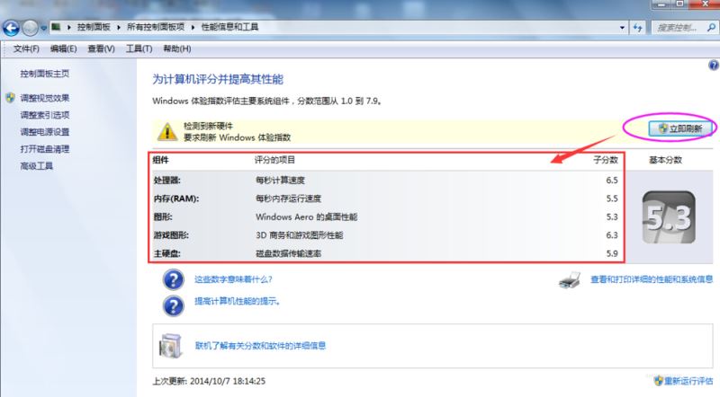 6、优化之后可以再次点击 windows体验指数获取最新的分级标准