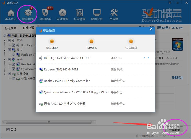2、可以下载驱动精灵或者安装电脑自带的驱动光盘,将驱动更新到稳定版本再测试