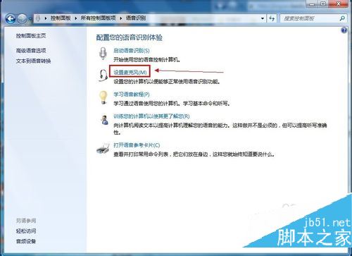 单击“开始”菜单,单击“控制面板”项,单击“语音识别”项