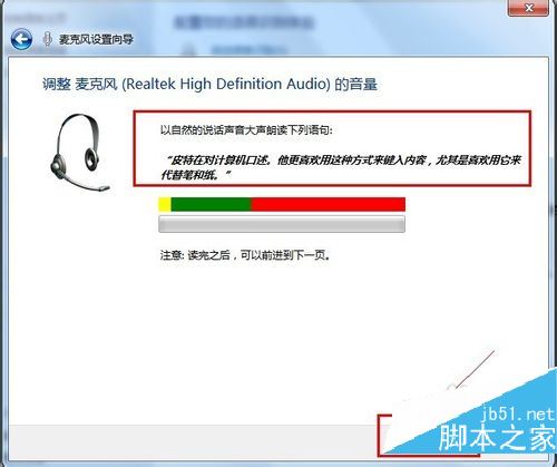 根据提示的内容进行语音测试,然后单击“下一步”继续