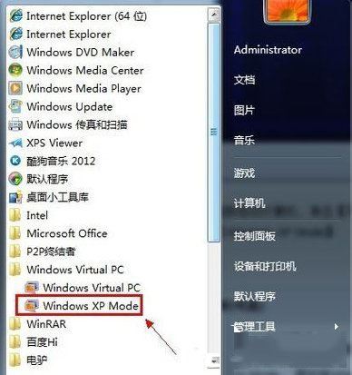 7、重新启动计算机,单击【开始】,单击【所有程序】,单击【windows virtual pc】,单击【windows xp mode】;