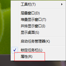 首先我们选择在任务栏的空白区域点击右键选择属性。