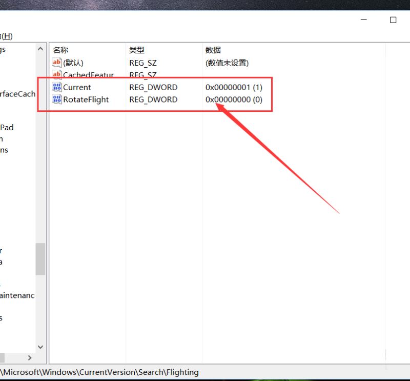 hkey_current_user\software\microsoft\windows\currentversion\search\flighting