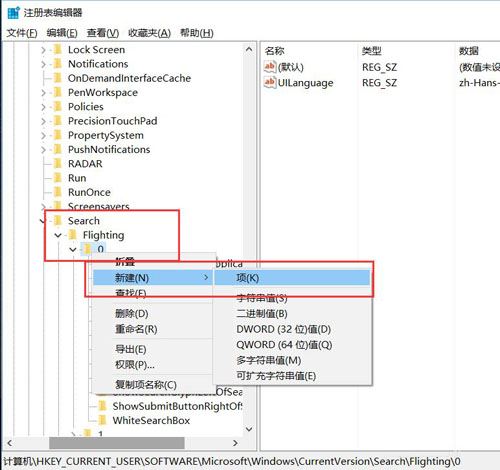 hkey_current_user\software\microsoft\windows\currentversion\search\flighting\0